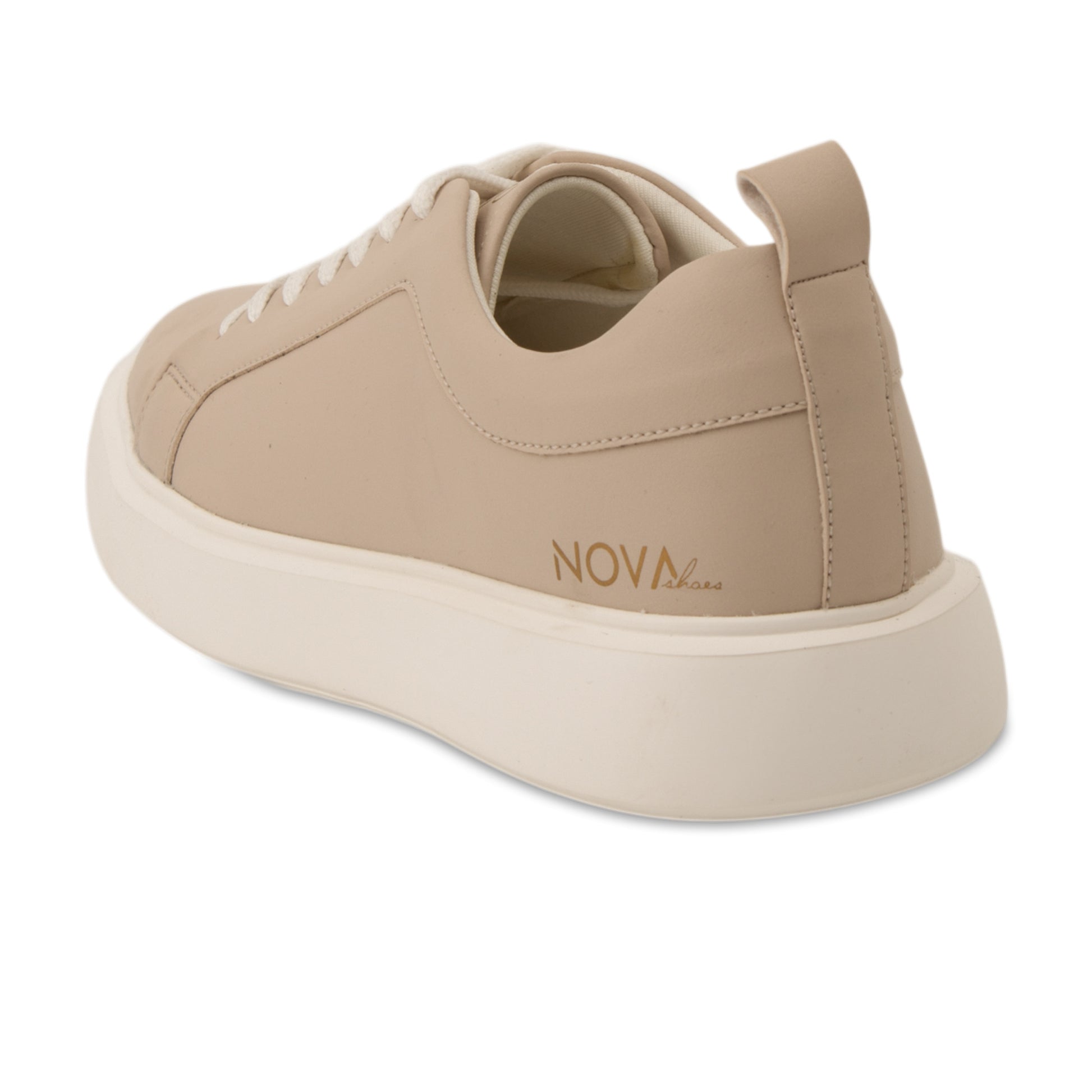 Pürüzsüz ve mat dış yüzeyinde kullanılan yüksek kaliteli vegan deri, ürüne premium bir dokunuş sağlarken, kolay temizlenebilir olmasıyla da pratik bir kullanım sunar. İç astarındaki yumuşak ve nefes alabilen tekstil malzeme, gün boyu süren konforun garantisidir. Ayakkabının yan tarafındaki zarif ve küçük altın rengi logo detayı ise, tasarıma rafine bir dokunuş ekler.